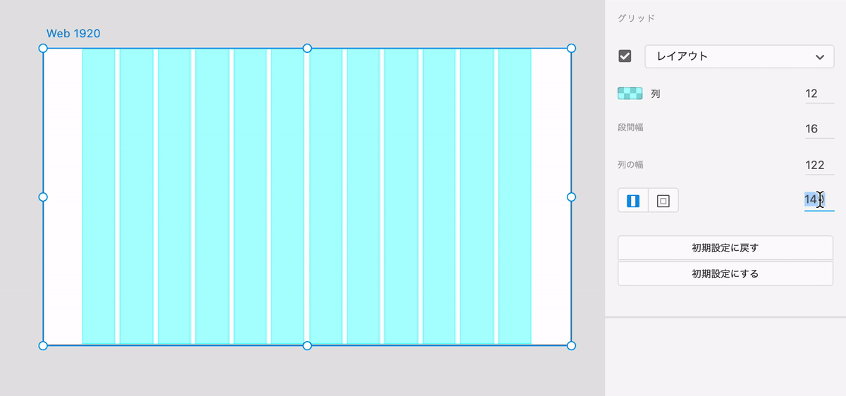 そんな時は、Shiftキーを押しながら、上下キーでそれぞれの値を操作してみてください。グリッドの余白・幅をイメージ通り調整できるはずです。