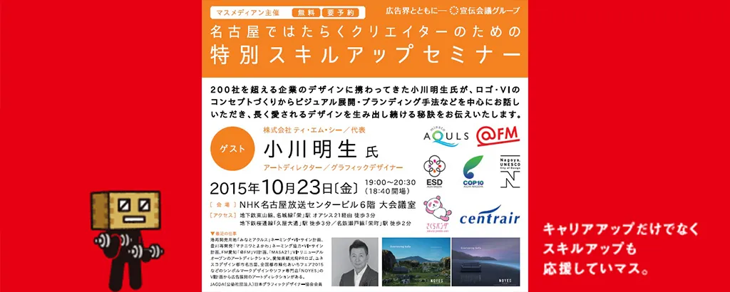 マスメディアンさん主催。TMC小川明生さん登壇の「長く愛されるデザイン・ロゴを生み出し続ける秘訣」というセミナーに参加しました。無料・先着順ということで即申込。