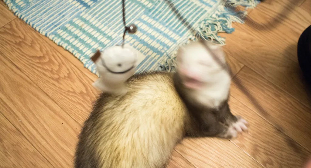 こがね君はフェレットトイロッド(フェレ釣り具)が大好き