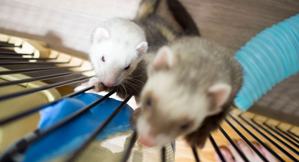 乾かした後、フェレットたちに自慢。わたしが洗ったんだぞ!