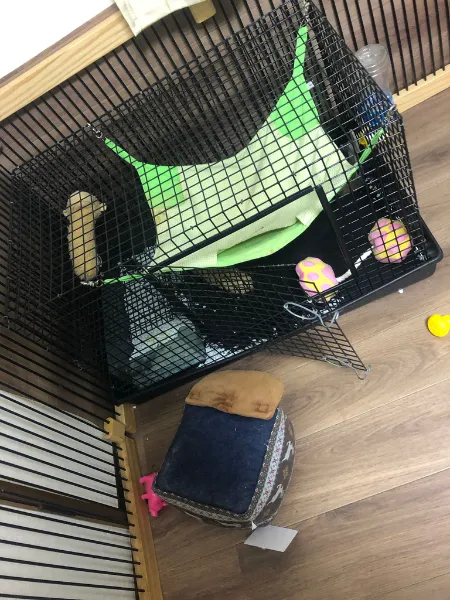 あと、ケージの中におさるさんなどおもちゃが散乱しているのは、てっぺいくんが趣味で運び込んでいるからです^^;
