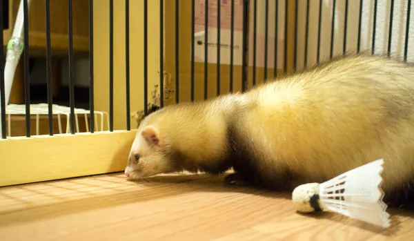 うちのフェレットさん、靴で遊ぶのが好きなんです。汚いし、靴底の出っ張ったゴムを食いちぎりそうで、誤飲が危険だと思い、柵を買って設置することにしました。